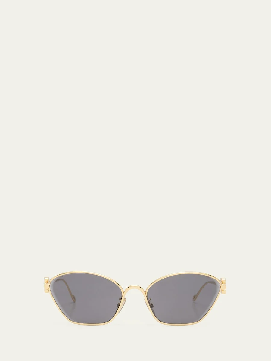Loewe shiny cat-eye sunglasses in metal Lens/bridge/temple (in mm): 57-18-140 Adjustable nose pads Anagram on temples Thin, tapered arms Loops on earpieces 100% UVA/UVB protection Made in Italy Proposition 65 warning for California residents Online Inquiries: BGS21_D4RUW| Store Inquiries: #4651702