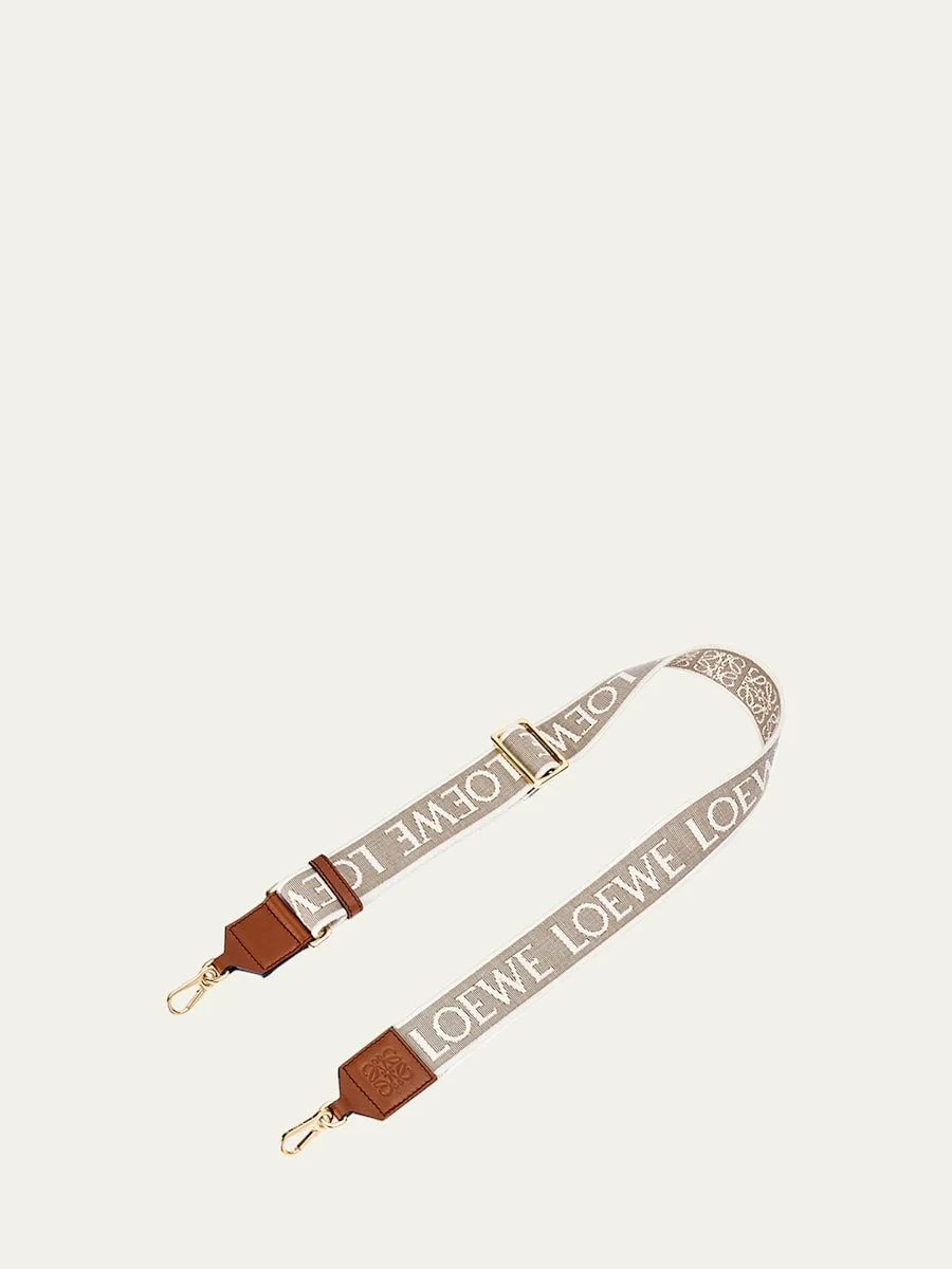 Loewe adjustable crossbody strap in Anagram jacquard and calf leather Lobster clasp ends Approx. 1.6"H x 41.3"W x 0.1"D Made in Spain Online Inquiries: BGS21_D424B| Store Inquiries: #4153317