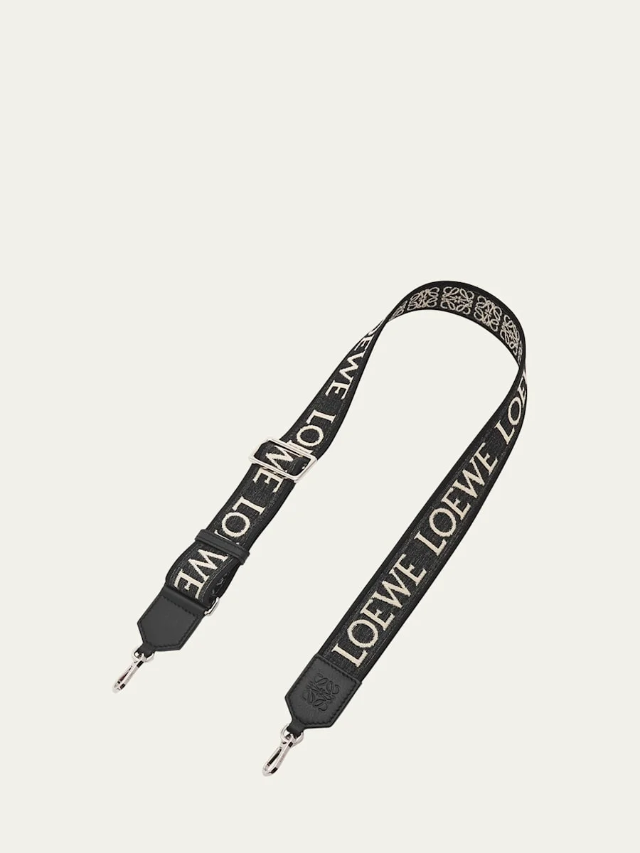 Loewe adjustable crossbody strap in Anagram jacquard and calf leather Lobster clasp ends Approx. 1.6"H x 41.3"W x 0.1"D Made in Spain Online Inquiries: BGS21_D424B| Store Inquiries: #4153317