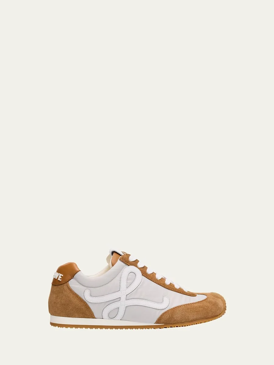 Loewe "Ballet Runner 2.0" sneakers in colorblocked fabric, suede and leather Flat heel Reinforced asymmetrical toe Lace-up vamp Tongue with Anagram logo Padded collar Signature leather L monogram on the sides Lightweight, sturdy TPU outsole Lining: Unlined Made in Italy Online Inquiries: BGS21_X6XFX| Store Inquiries: #5038522
