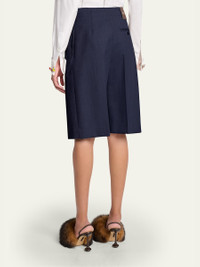 Loewe wool Bermuda trousers evoke relaxed elegance with a gathered waistband by calfskin leather double buckle fastening Mid rise sits high on hip Side slip pockets Back button-welt pocket Straight legs Cropped length Side zip closure Wool/leather/cotton Made in Italy Online Inquiries: BGS21_BAZM4| Store Inquiries: #5357830