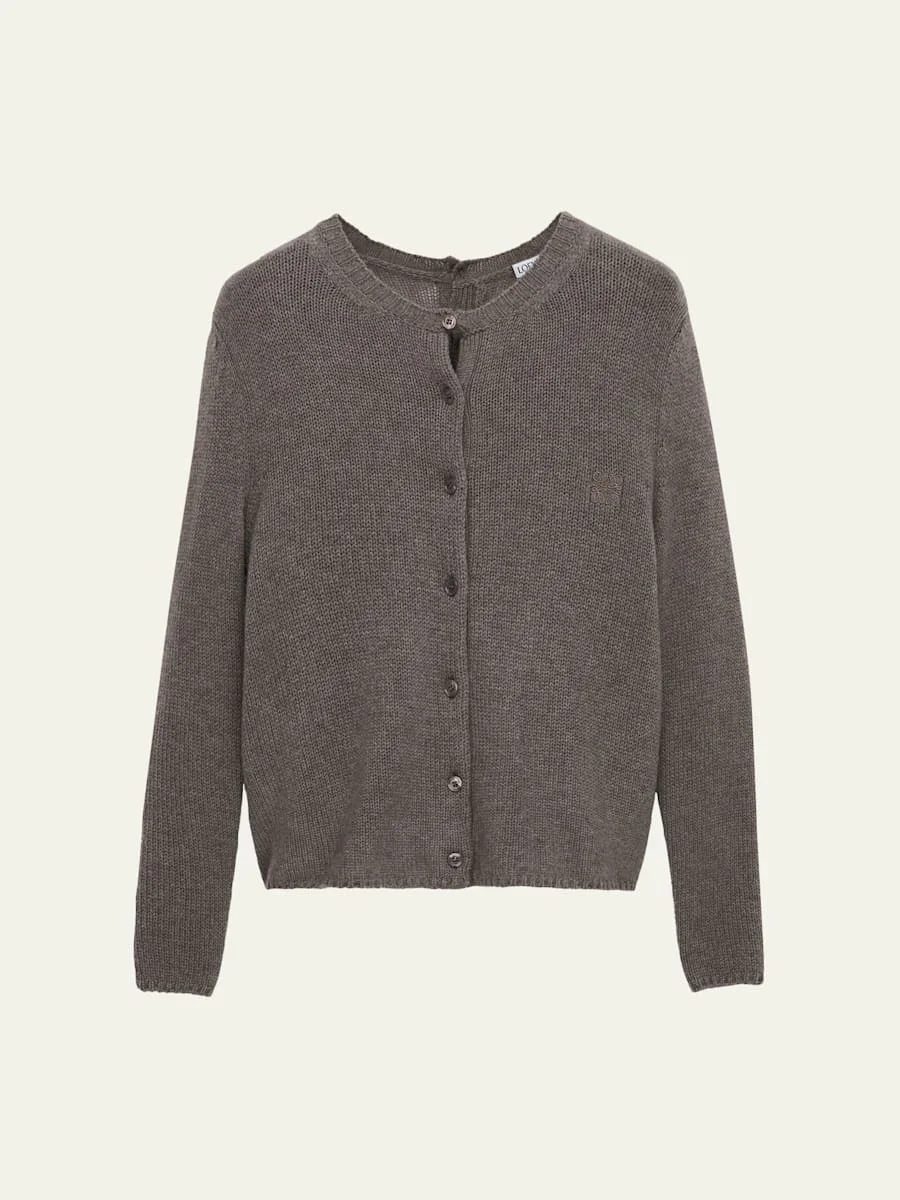 This cozy cashmere cardigan by Loewe features a unique design of front and back button plackets Crew neckline Dropped shoulders Long sleeves Relaxed fit Hip length Cashmere Made in Italy