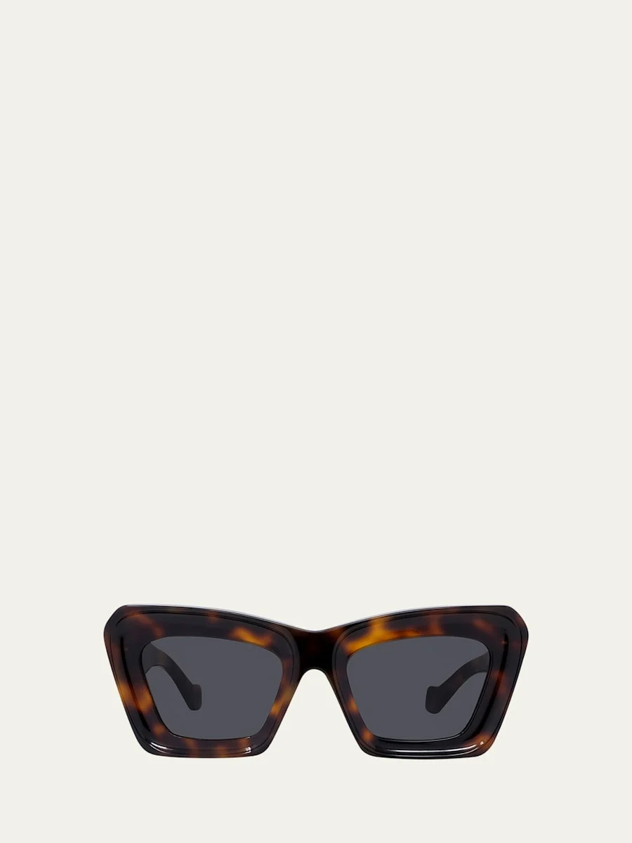 Loewe cat eye sunglasses in acetate Eye/bridge/temple (in mm): 52-21-140 Solid lenses Saddle nose bridge Thick, tapered legs Signature metal anagram on both temples Acetate/nylon/polyamide Hand wash 100% UVA/UVB protection Made in Italy Proposition 65 warning for California residents Online Inquiries: BGS21_D517A| Store Inquiries: #4879035