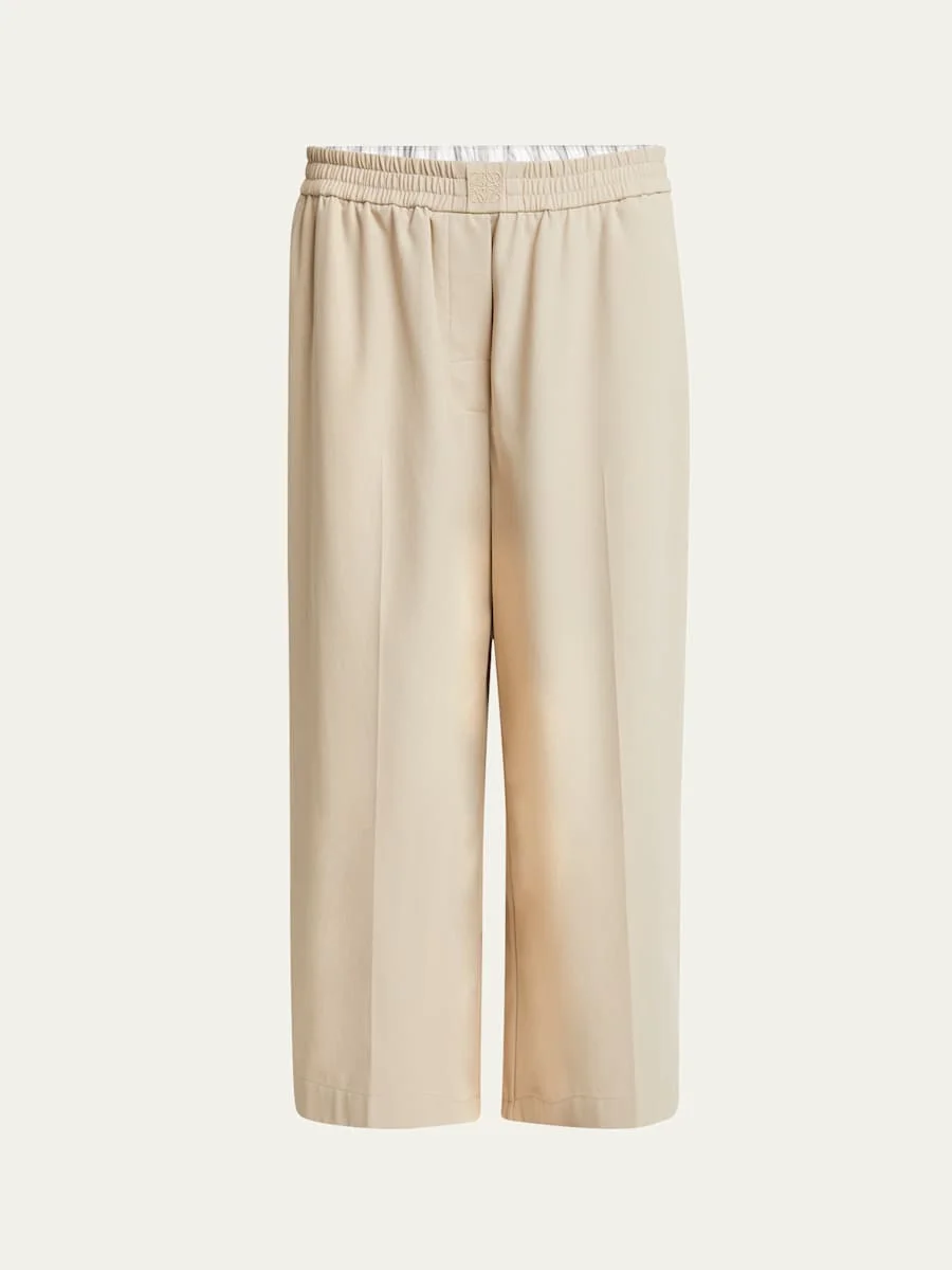 Loewe double waistband trousers with an Anagram embroidery Cropped length Mid rise sits high on hip Wide legs Side slip pockets Step-in style Cotton/polyester Dry clean Made in Italy Model is 5'10"/177cm. Online Inquiries: BGS21_B9MWX| Store Inquiries: #4918641