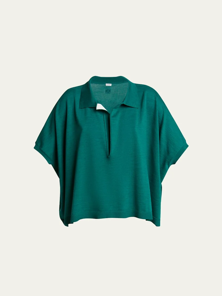 Loewe knit sweater Johnny collar Short sleeves Relaxed fit Pullover style Wool/polyester Dry clean Made in Italy Model is 5'10"/177cm. Online Inquiries: BGS21_B9MXT| Store Inquiries: #4918671