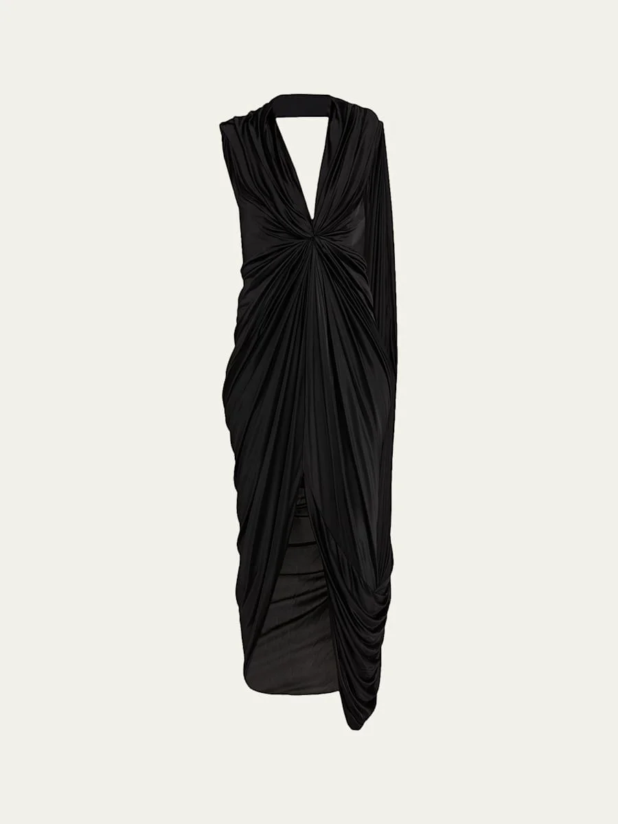 Rendered from lightweight fluid viscose jersey, this Loewe dress features a draped construction and an asymmetric silhouette with a looped panel on one side. Deep V neckline Sleeveless Builtin mesh bustier Hem falls below the knee Sheath silhouette Invisible back zip closure Viscose/cotton/nylon/polyamide Professional cleaning recommended Made in Spain