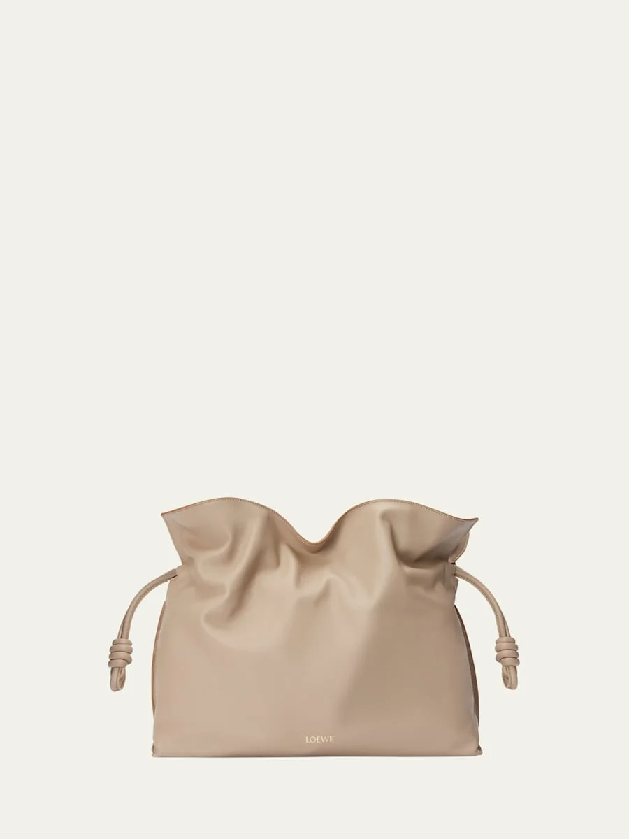 Loewe "Flamenco" shoulder bag in leather, cotton, and linen Shoulder straps Can be worn as a shoulder or clutch bag Side drawstring closure; magnetic top closure Interior, one zip pocket Approx. 11.3"H x 14.8"W x 5.5"D Made in Spain Online Inquiries: BGS21_V644X| Store Inquiries: #4704478