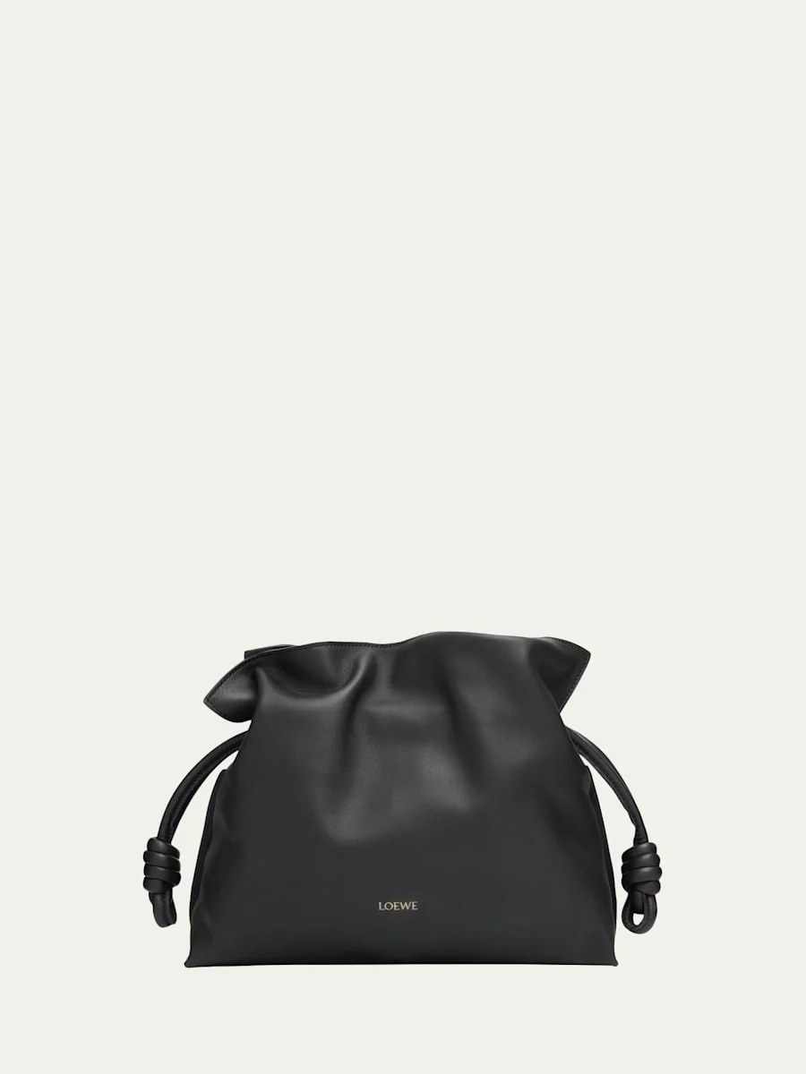 Loewe "Flamenco" soft and slouchy clutch bag crafted in nappa calfskin leather Detachable, adjustable shoulder strap Can be worn as a clutch or shoulder bag Drawstring closure Approx. 9.6"H x 11.7"W x 4.1"D Made in Spain