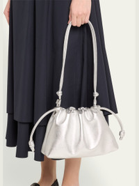 Loewe "Flamenco" shoulder bag in metallic lambskin leather Chain shoulder Open top with magnetic and side drawstring closures Approx. 7.8"H x 11.7"W x 4.1"D Made in Spain Online Inquiries: BGS21_V6DNT| Store Inquiries: #4921423