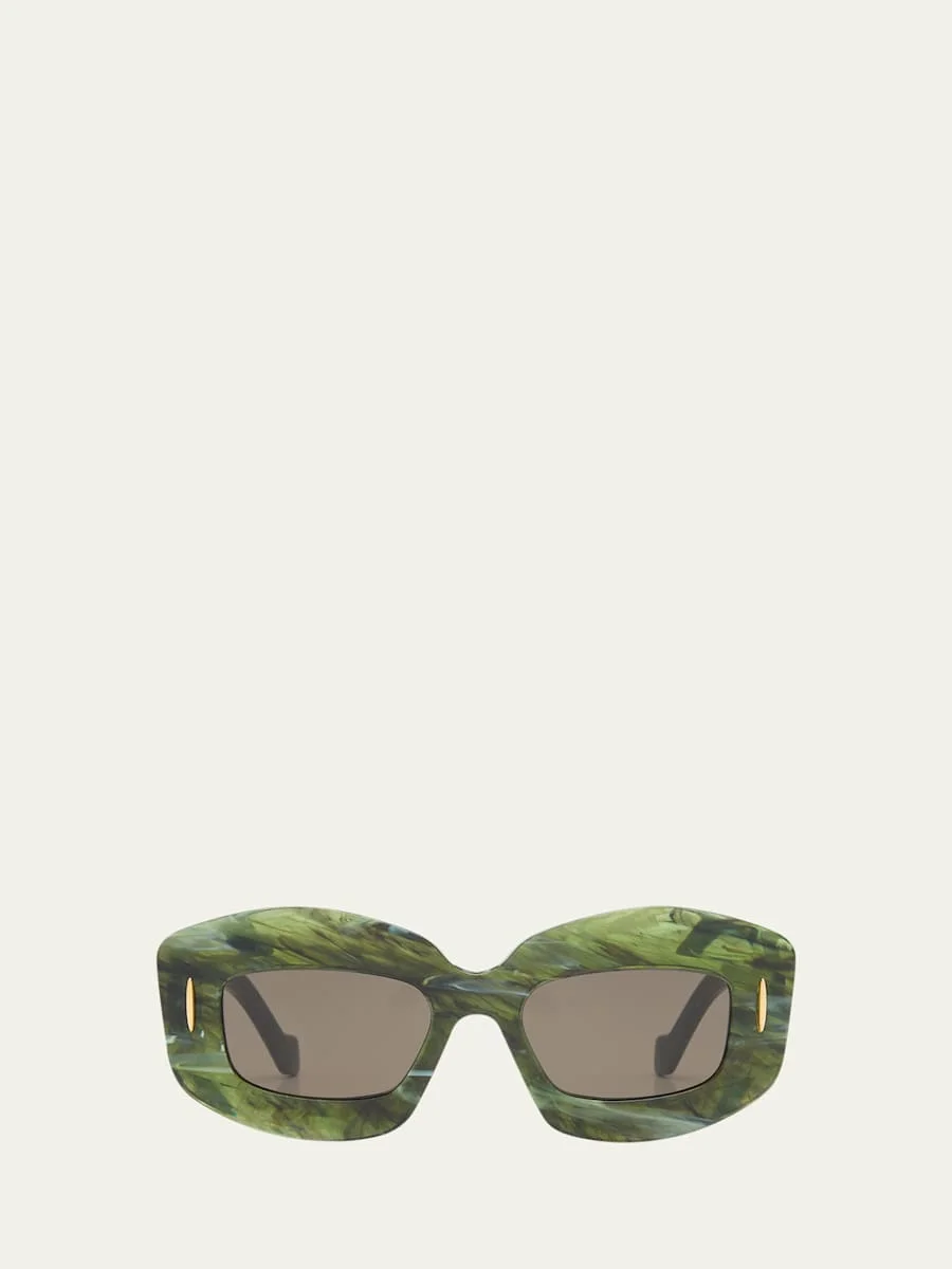 Loewe rectangle sunglasses in acetate 2023 advertized style and new Loewe interpretation Lens/bridge/temple (in mm): 49-19-140 Saddle nose bridge Anagram on temples Wide, tapered arms 100% UVA/UVB protection Made in Italy Proposition 65 warning for California residents Online Inquiries: BGS21_D4NJ5| Store Inquiries: #4565319