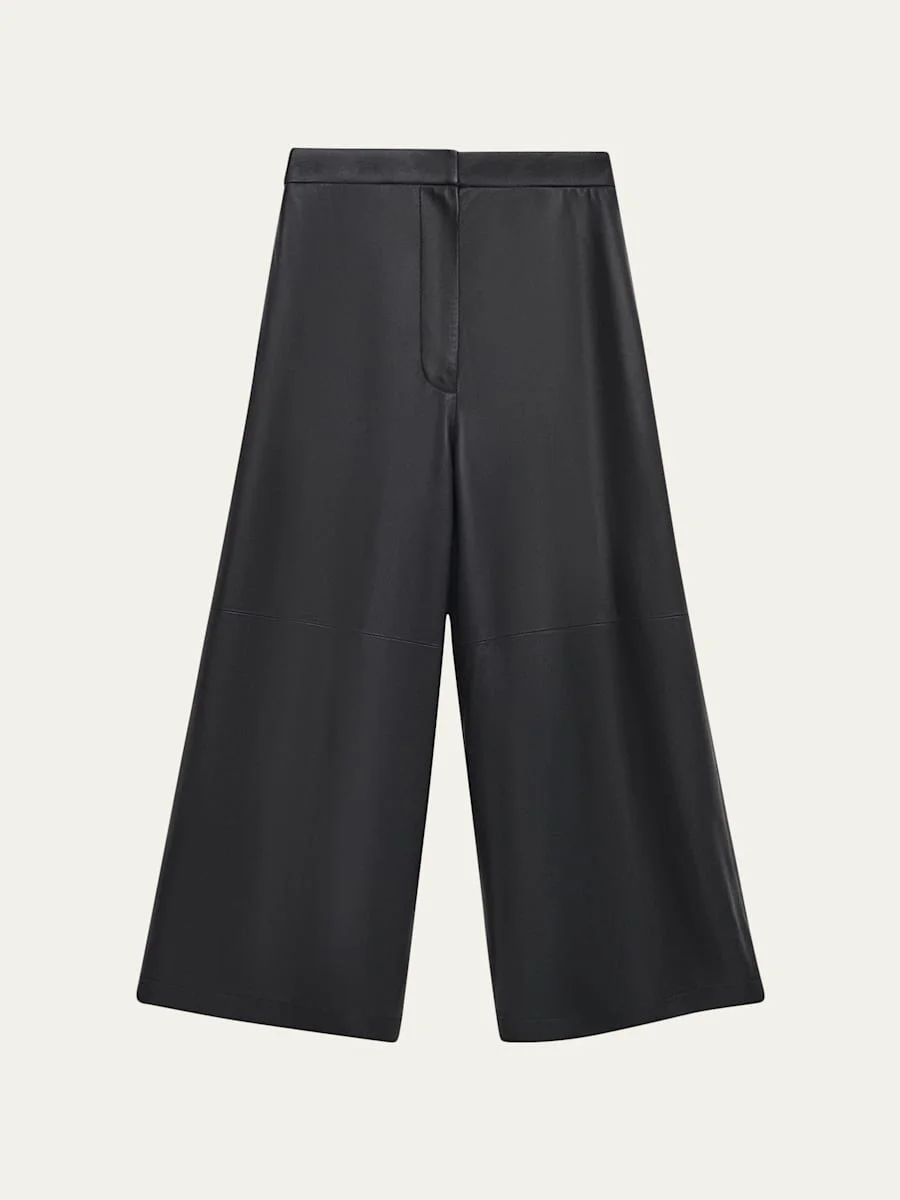 Loewe trousers are crafted from supple lambskin leather Mid rise sits high on hip Wide legs Cropped length Hook/zip fly Leather Made in Spain