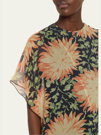 Loewe chiffon dress in floral print Round neckline Short sleeve Full length Shift silhouette Slipover style Silk self/lining Made in Spain Online Inquiries: BGS21_B9WG0| Store Inquiries: #4987424