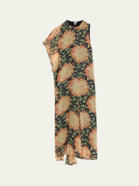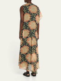 Long Floral Print One-Sleeve Chiffon Silk Dress