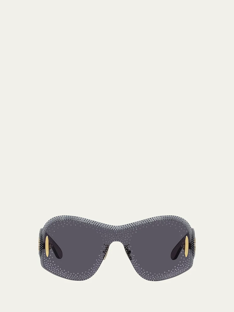 Loewe "LW4167USW" studded shield sunglasses in metal Eye/bridge/temple (in mm): 144-0-145 Solid lenses Adjustable nose pads Anagram metal signature in relief on both temples Thick, tapered legs Metal/nylon/polyamide 100% UVA/UVB protection Made in Italy Proposition 65 warning for California residents Online Inquiries: BGS21_D51KU| Store Inquiries: #4884011