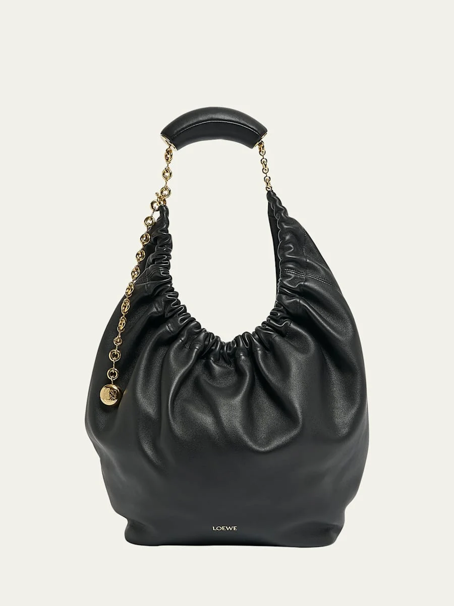 Medium Squeeze Chain Leather Hobo Bag