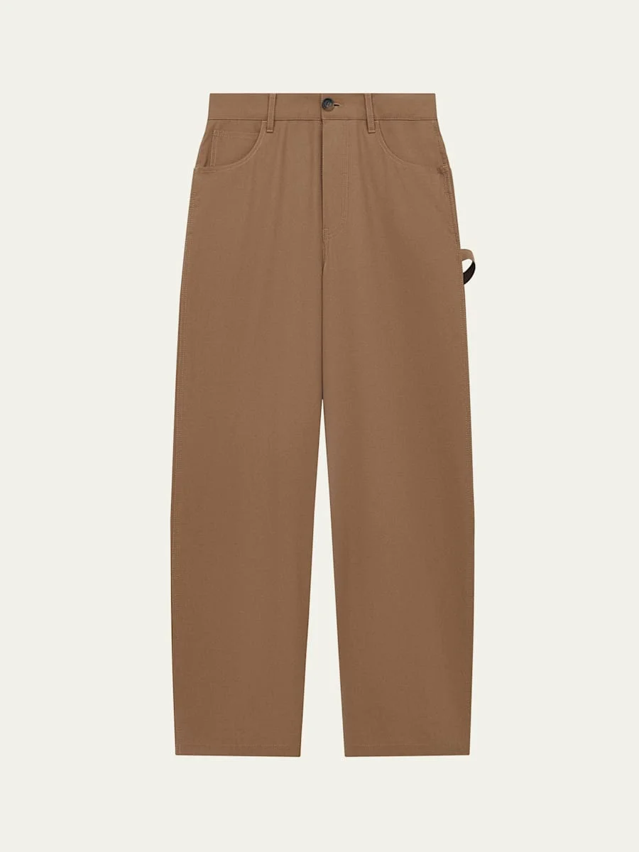 A leather hammer loop details these cotton twill Loewe carpenter trousers. Regular rise Five-pocket style Leather logo patch at the back Relaxed fit Full length Concealed zip fly Dry clean Cotton/leather/polyester Made in Italy Online Inquiries: BGS21_NDGBZ| Store Inquiries: #5037235