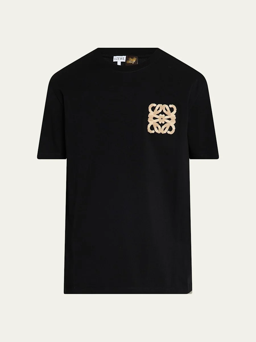 Loewe jersey t-shirt features a front flocked anagram logo Crew neckline Short sleeves Relaxed fit Pullover style Cotton/wool/acrylic Professional cleaning recommended Made in Portugal Model is 6'1"/185cm. Online Inquiries: BGS21_NC77K| Store Inquiries: #4822974