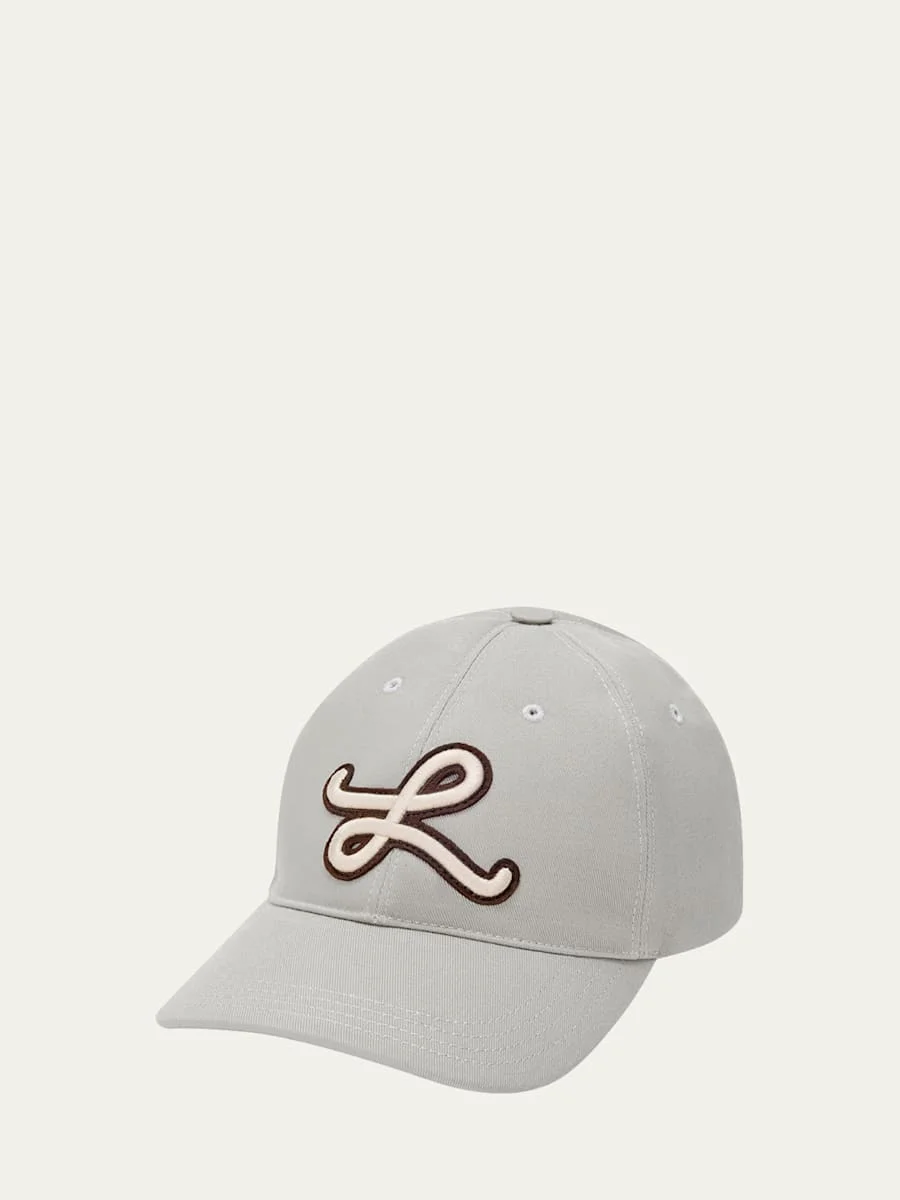This Loewe baseball cap showcases the Lmonogram on the front for a distinctive touch. Top button Embroidered eyelets Sixpanel construction Curved stitched brim Cotton/polyester/leather Made in Italy