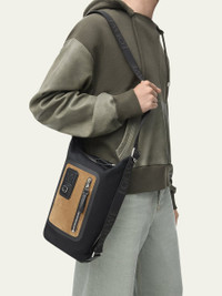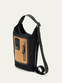 Loewe crossbody bag in nylon, cotton, and leather showcasing the signature Anagram with a functional D-ring on the front Adjustable logo webbing shoulder strap Zip closure Exterior, two zip pockets Approx. 13.3"H x 10.5"W x 4.49"D Made in Portugal Online Inquiries: BGS21_NDMGT| Store Inquiries: #5048994