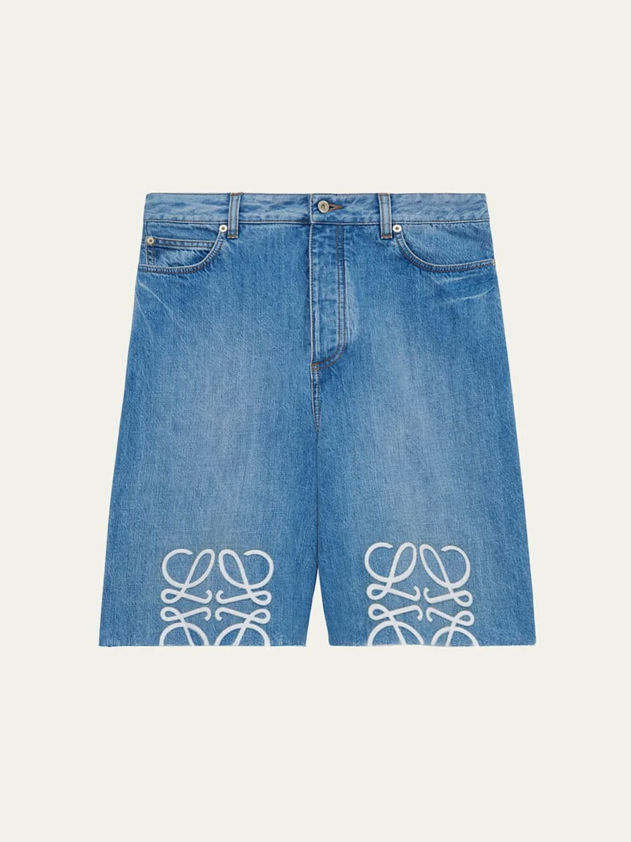 Men's Maxi-Anagram Washed Denim Shorts
