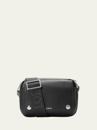 Loewe "Pebble" camera bag in grained calf leather Adjustable, detachable fabric logo strap Exterior, front pocket with magnetic closure Interior, two card slots Suede lining Zip top closure Approx. 7.8"W x 4.9"H x 2.3"D Made in Spain Online Inquiries: BGS21_NETJV| Store Inquiries: #5045730