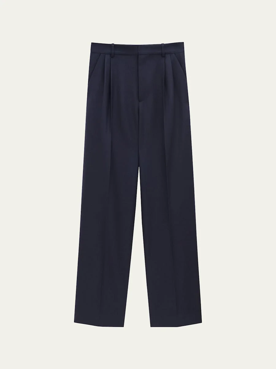 Loewe Navy melange trousers Dry clean / professional care Full length Wool/viscose/cotton Made in Italy Model is 6'1"/185cm. Online Inquiries: BGS21_NCC2G| Store Inquiries: #4853084