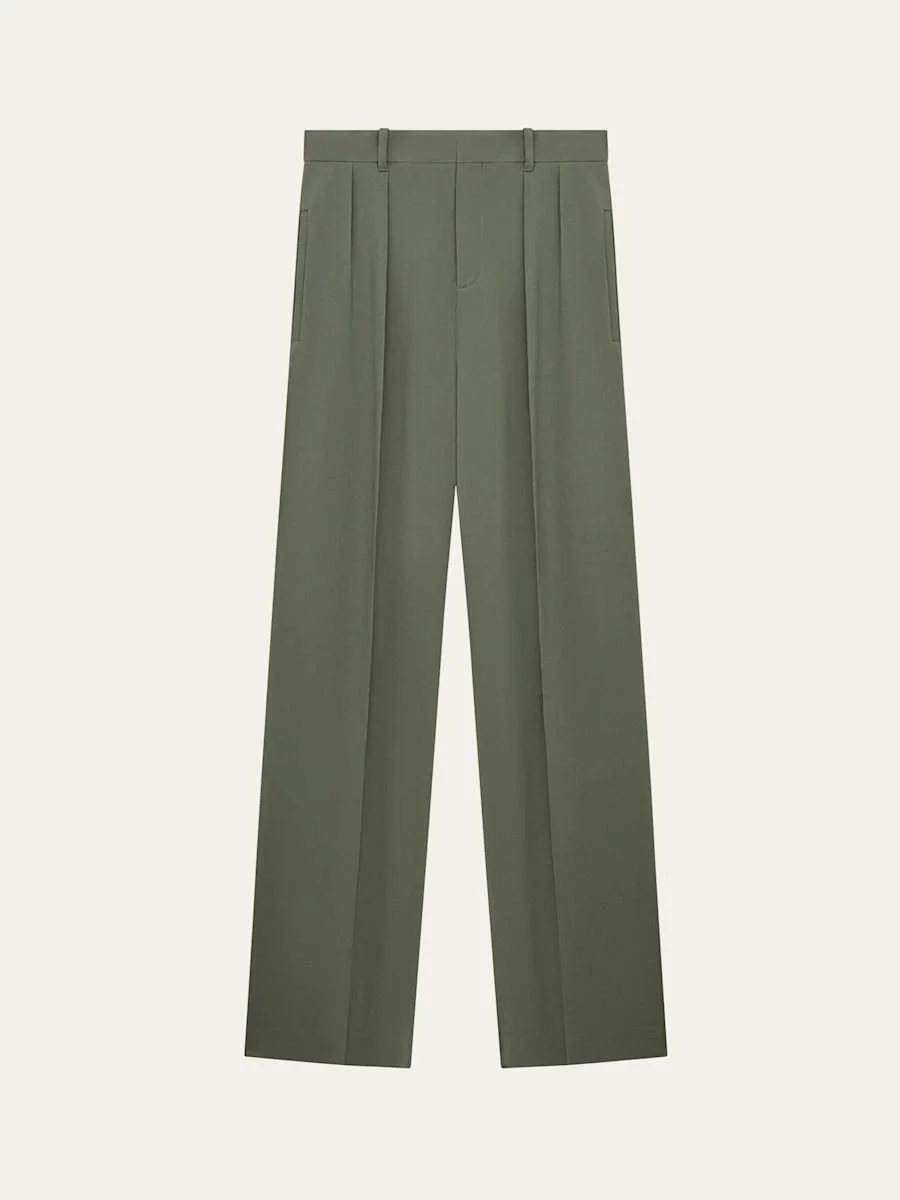 Men's Sage Viscose Blend Cady Pleated Trousers