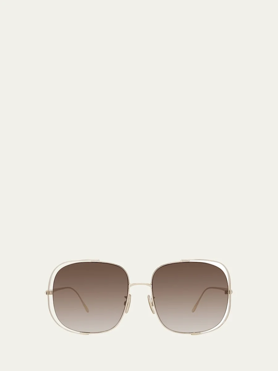 Loewe rectangle sunglasses in metal Eye/bridge/temple (in mm): 57-17-130 Gradient lenses Adjustable nose pads Loewe logo lasered on both temples Capped earpieces Metal/nylon/polyamide Hand wash 100% UVA/UVB protection Made in Italy Proposition 65 warning for California residents Online Inquiries: BGS21_D517B| Store Inquiries: #4879036