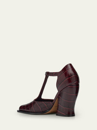 Elevated with a textural croc-embossed finish, the "Onda" pumps by Loewe are made of Italian calf leather 3.50 in / 90 mm block heel Asymmetric square toe T-strap vamp Adjustable ankle strap Leather outsole Made in Italy Online Inquiries: BGS21_X77ZV| Store Inquiries: #5257265