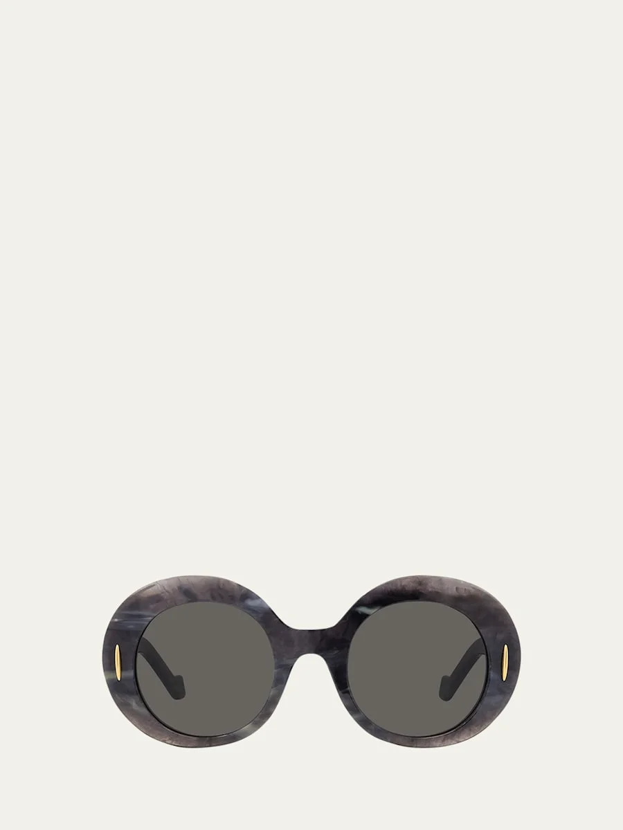 Loewe oval sunglasses in acetate Eye/bridge/temple (in mm): 50-24-140 Solid lenses Saddle nose bridge Thick, tapered legs Signature metal anagram on both temples Acetate/nylon/polyamide Hand wash 100% UVA/UVB protection Made in Italy Proposition 65 warning for California residents This product contains perfluoroalkyl and polyfluoroalkyl substances (PFAS). For more information, please visit the manufacturer’s website. Online Inquiries: BGS21_D549G| Store Inquiries: #4879034