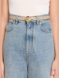 Loewe skinny belt in leather Approx. 0.8"W Pebble buckle Adjustable fit Cut to size Professional cleaning recommended Made in Spain
