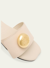 Loewe "Pebble" sandals in calfskin leather with golden anagram logo accent Flat heel Open toe Wide band upper Easy slide style Leather outsole Lining: Unlined Made in Italy