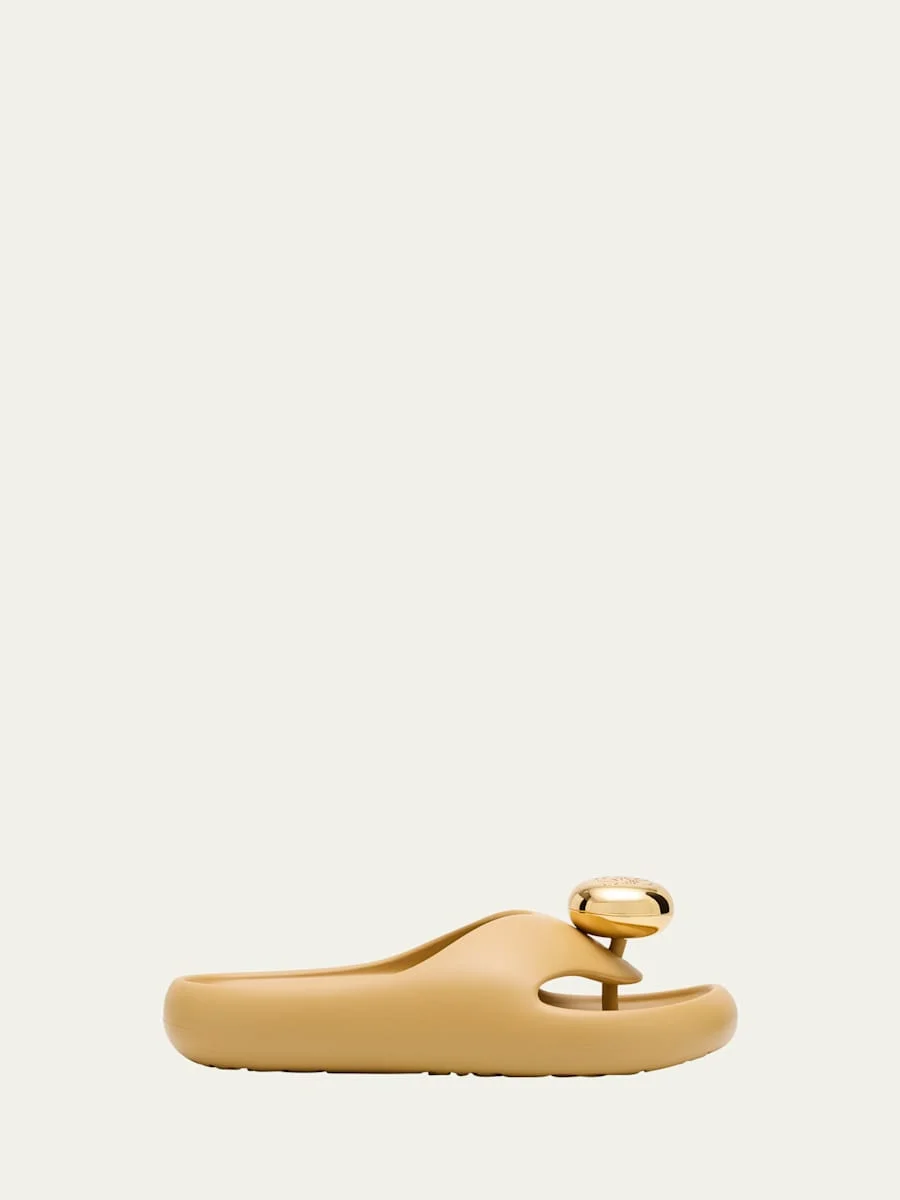 Loewe "Pebble" shiny patent-effect rubber and acetate cruise sandals Chunky flat heel Toe post Slide style Molded comfort footbed Lightweight, flexible EVA outsole Made in Italy Online Inquiries: BGS21_X6WH9| Store Inquiries: #5024417