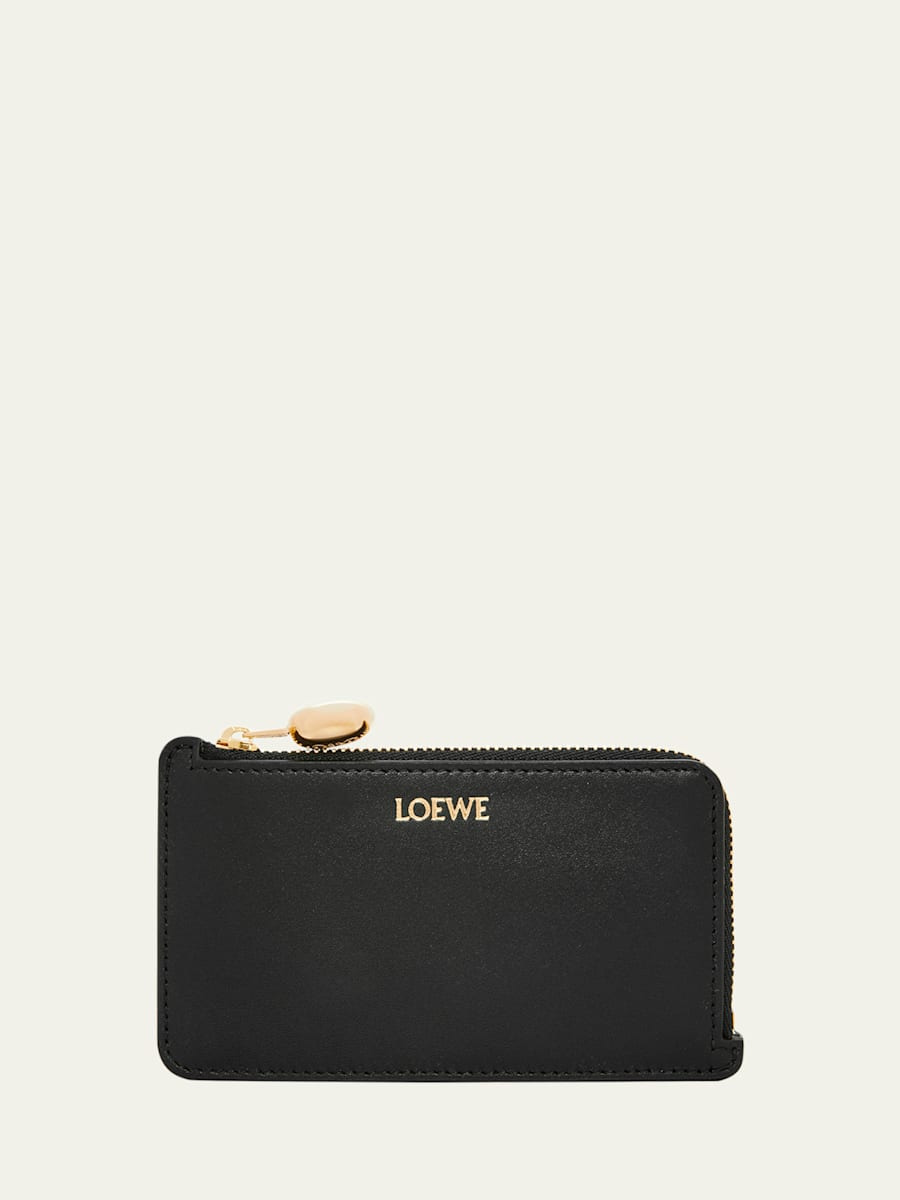 Loewe card holder in shiny napa calfskin leather Featuring a signature pebble zip top closure Exterior, four card slots Approx. 3"H x 5.1"W x 0.4"D Made in Spain Online Inquiries: BGS21_V6721| Store Inquiries: #4781357