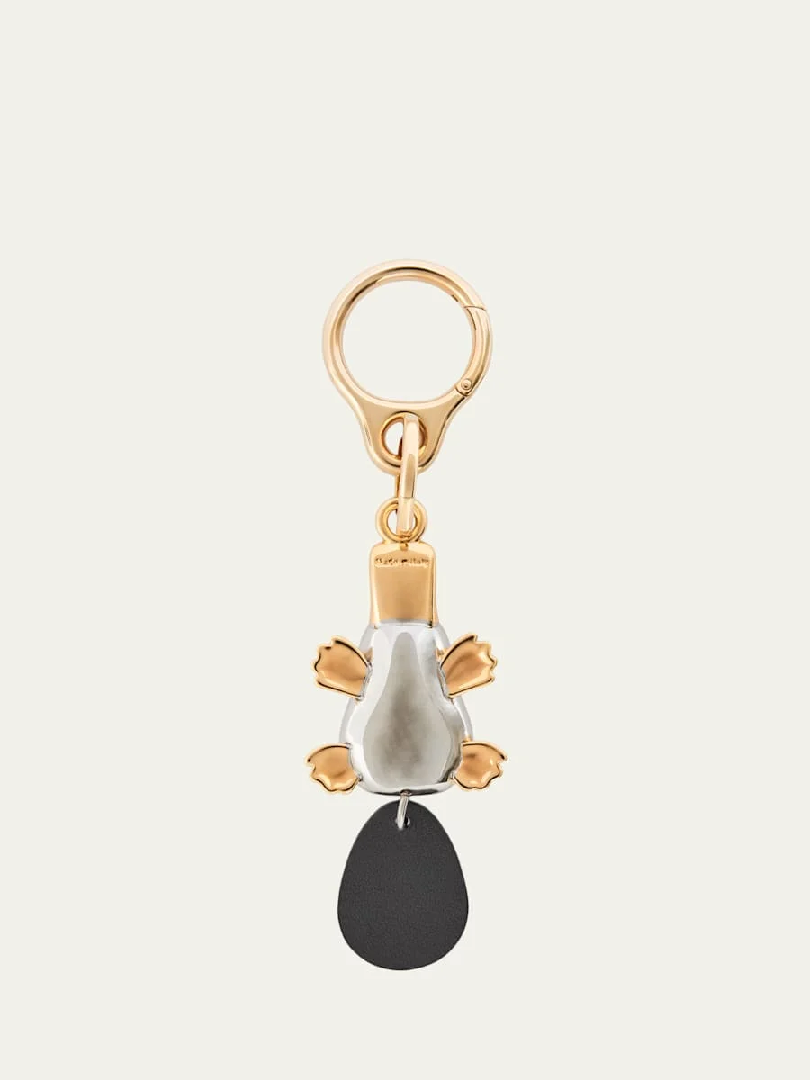 Crafted in brass with silver and gold finishes, this Loewe key ring is shaped like a platypus with an Anagramdebossed calfskin tail Pushlock closure Approx. 5.6"H x 1.3"W Made in Italy