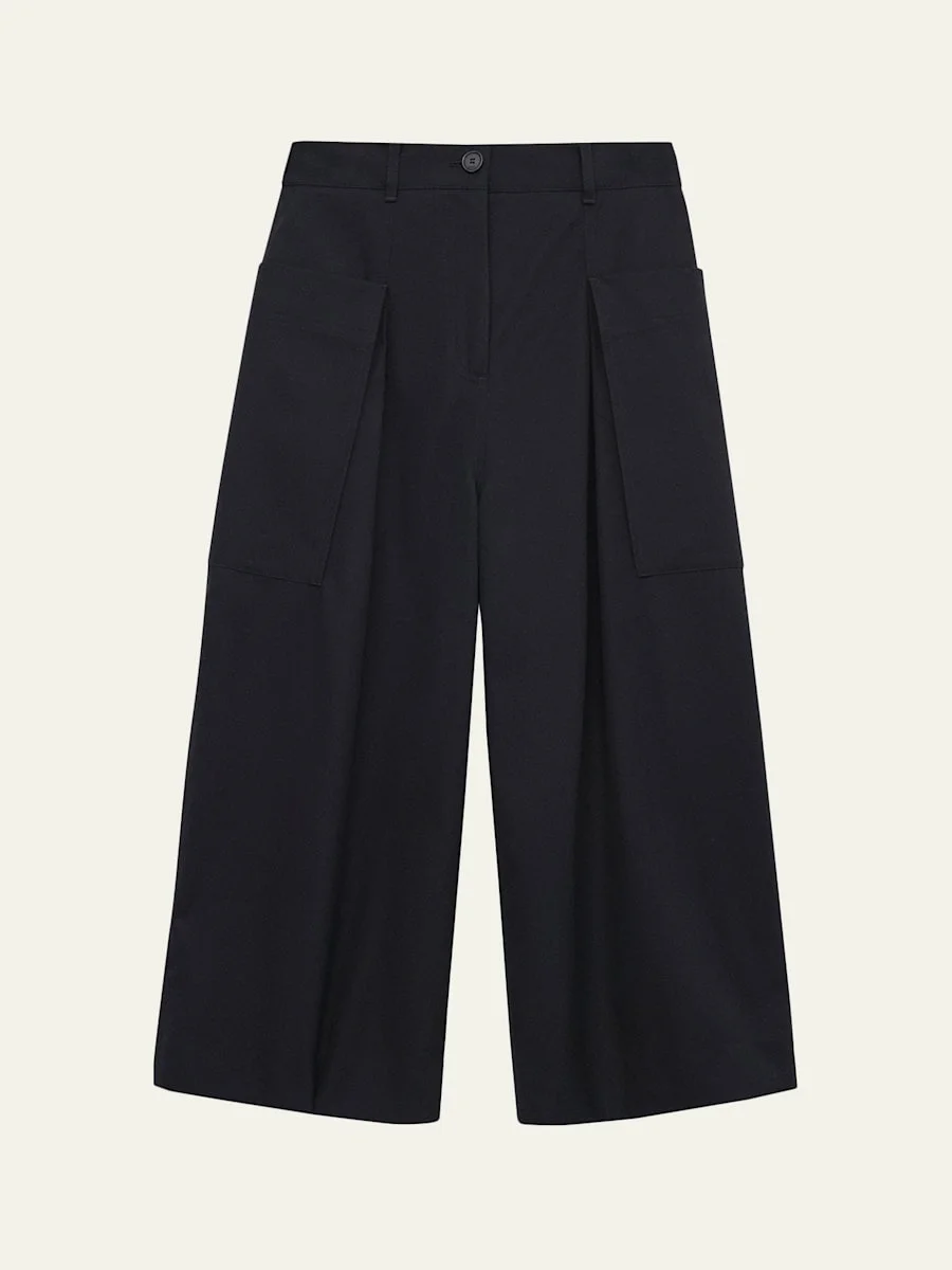 Pleated Wide-Leg Cropped Trousers