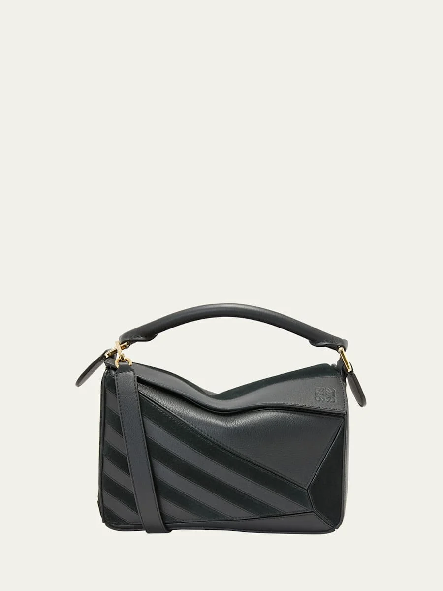 Puzzle Small Striped Top-Handle Bag in Leather & Suede