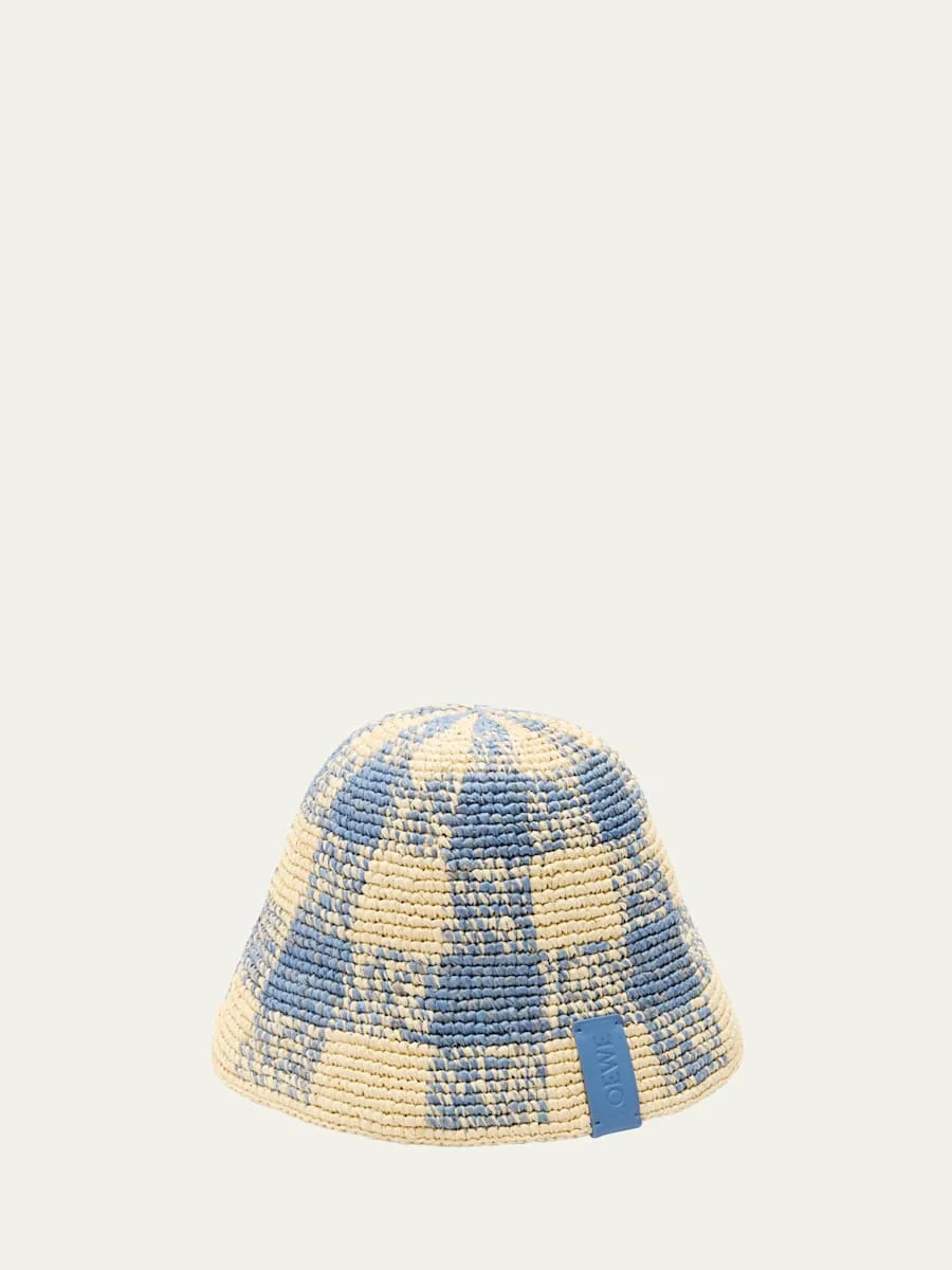 Loewe raffia bucket hat decorated with a check pattern Leather embossed logo patch Round crown Downturned brim Professional cleaning recommended Imported Online Inquiries: BGS21_D59CY| Store Inquiries: #5027085