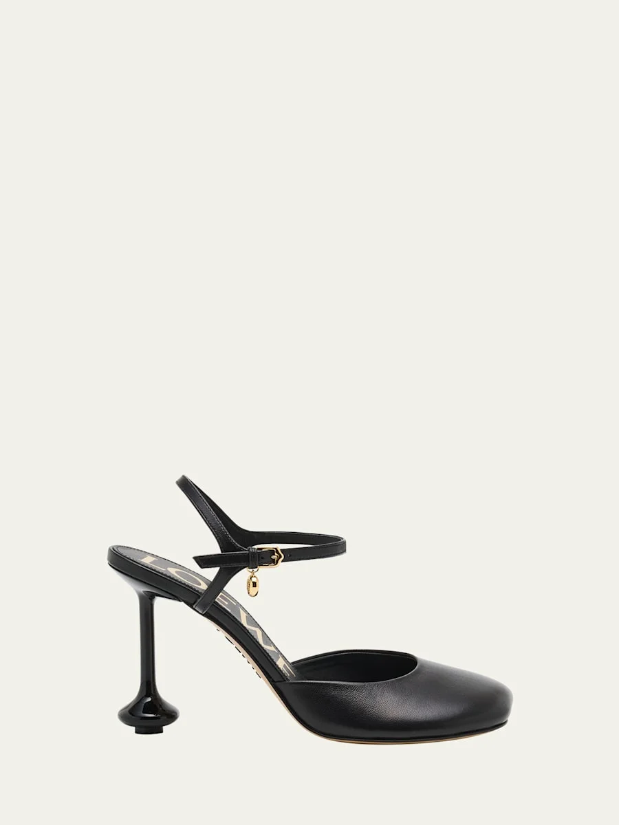 Loewe "Toy" leather pumps 3.50 in / 90 mm stiletto drop kitten heel Round toe Adjustable ankle strap Leather outsole Lining: Unlined Made in Italy