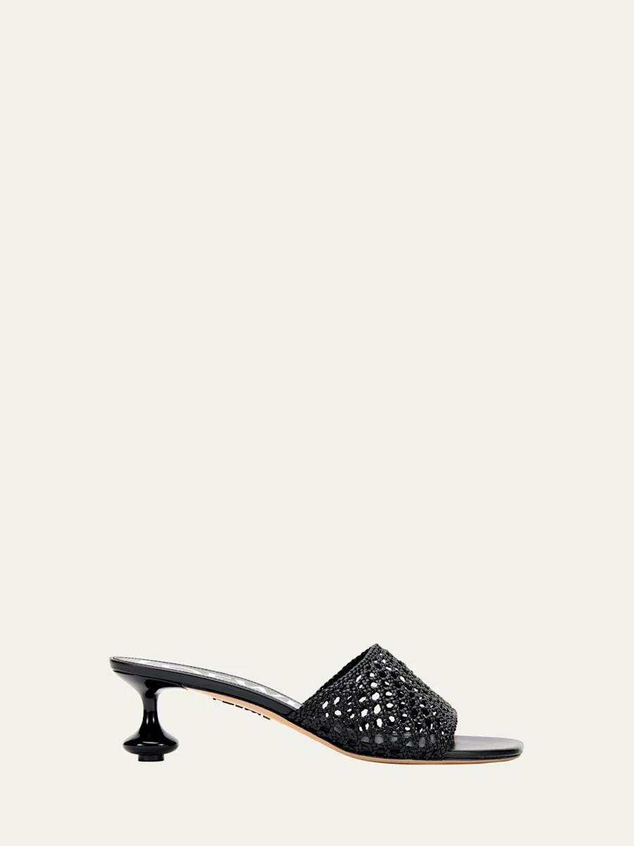 Loewe "Toy" open weave leather mule sandals 1.75 in / 45 mm kitten drop heel Open toe Slide style Leather outsole Lining: Unlined Professional cleaning recommended Made in Italy Online Inquiries: BGS21_X6X6B| Store Inquiries: #5031226