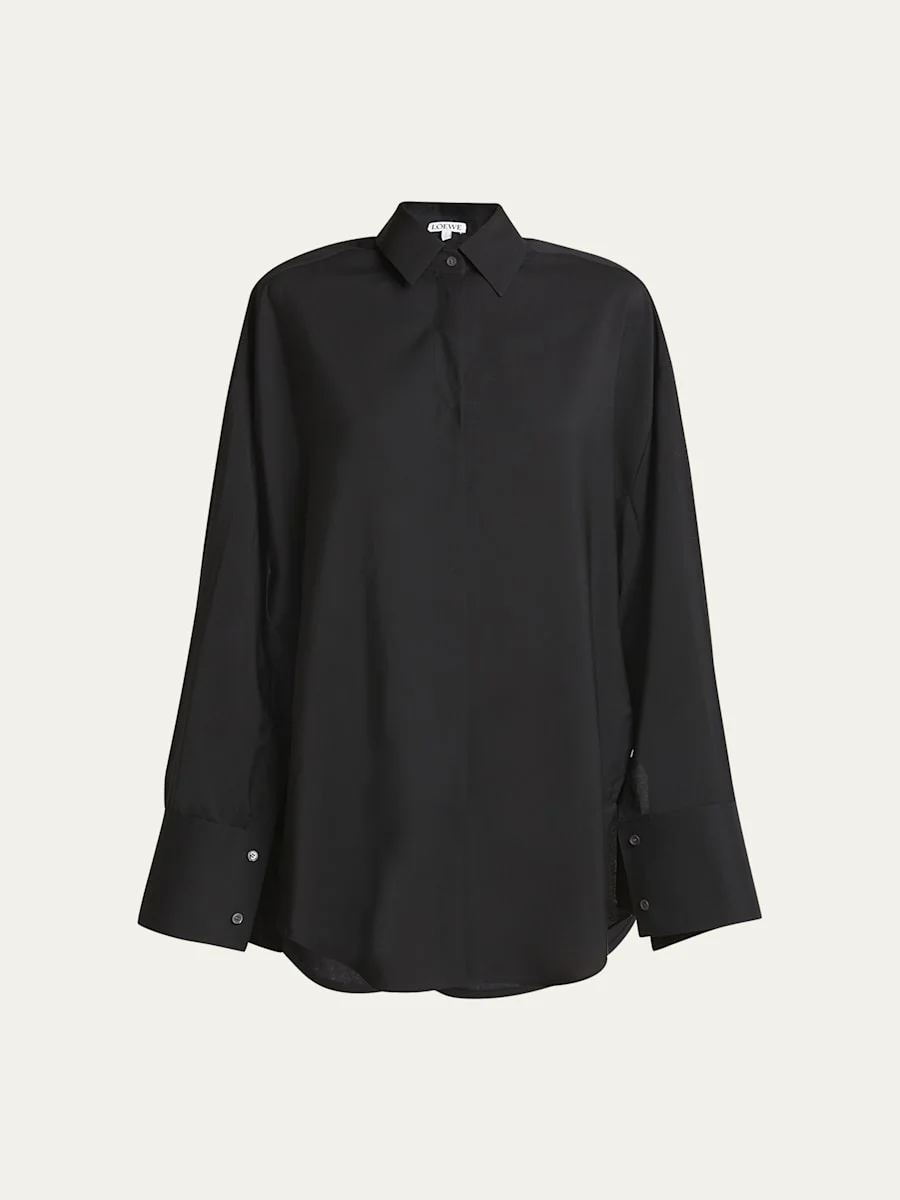 Loewe solid blouse Spread collar; concealed button placket Long sleeves; button cuffs Relaxed fit Polyester/wool Dry clean Made in Italy Model is 5'10"/177cm. Online Inquiries: BGS21_B9MXR| Store Inquiries: #4918669