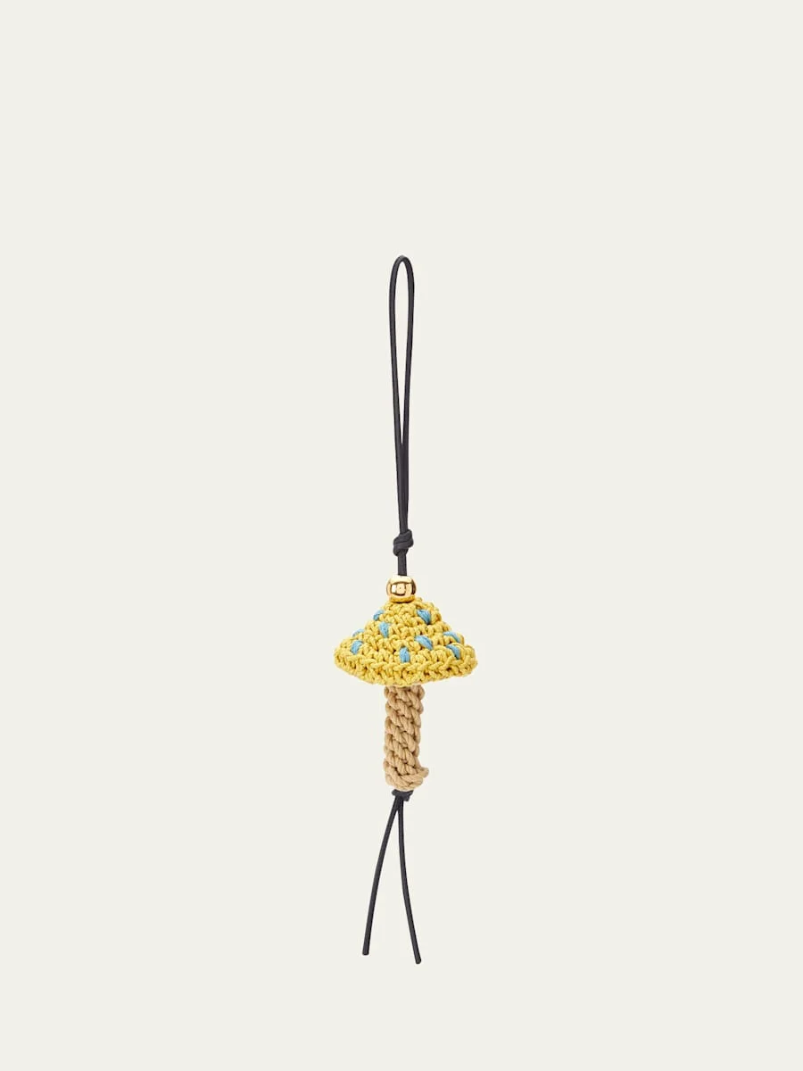 This Loewe bag charm adds a playful touch of nature to any bag, woven of linen-cotton cord in the shape of a mushroom and topped with a signature Anagram Pebble Leather cord strap Approx. 12.3"H x 2.5"W Made in Spain Online Inquiries: BGS21_V6R5P| Store Inquiries: #5364695