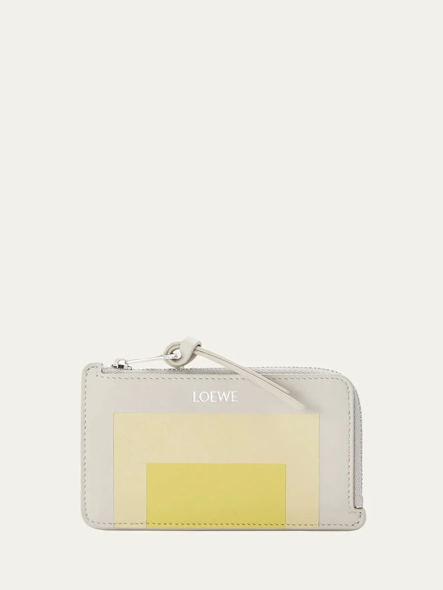 This slim cardholder from the Loewe x Albers collection is crafted in smooth nappa calfskin leather with intarsio squares inspired by Josef Albers's "Homage to the Square" series Designed in collaboration with the Josef amp; Anni Albers Foundation Zip top closure Exterior, four card slots Approx. 3"H x 5.1"W x 0.4"D Made in Spain