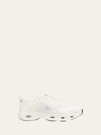 The Loewe x On collaboration sneakers showcase a layered mesh upper crafted from semitranslucent yarns with a TPU overlay on an exclusive lightweight foam sole Chunky flat heel Reinforced round toe Laceup vamp Speed laces with Pebble toggle Padded collar Backstay pull tab Single Cloud on the heel Collaboration logo on the tongue, side and pull tab Rubber outsole Suggested to size up as this style runs small Imported