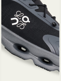 The Loewe x On collaboration sneakers showcase a layered mesh upper crafted from semitranslucent yarns with a TPU overlay on an exclusive lightweight foam sole Chunky flat heel Reinforced round toe Laceup vamp Speed laces with Pebble toggle Padded collar Backstay pull tab Single Cloud on the heel Collaboration logo on the tongue, side and pull tab Rubber outsole Suggested to size up as this style runs small Imported