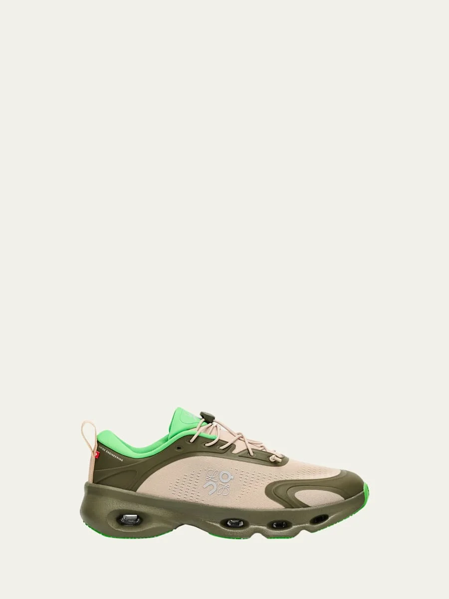 Loewe x On "Cloudsolo" sneakers in recycled polyester and engineered mesh Speed laces with Pebble toggle Collaborative logo on side Back pull-tab to ease slip on Exclusive co-designed light foam sole. Rubber outsole Imported Online Inquiries: BGS21_X7E52| Store Inquiries: #5472542
