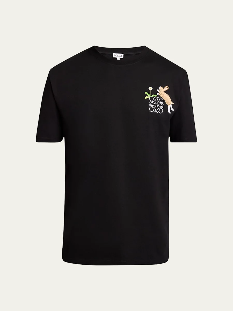 Loewe x Suna Fujita jersey T-shirt Crew neckline Logo embroidery at chest Short sleeves Pullover style Cotton/polyester/elastane Dry clean/professional care Made in Portugal Model is 6'1"/185cm. Online Inquiries: BGS21_NCP9N| Store Inquiries: #4922407