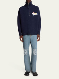 Loewe x Suna Fujita sweater in English rib knit Ribbed stand collar Half-zip placket with leather puller Embroidered submarine at chest Long sleeves Ribbed cuffs and waistband Pullover style Wool/viscose Dry clean/professional care Made in Italy Model is 6'1"/185cm. Online Inquiries: BGS21_NCP9Y| Store Inquiries: #4922417