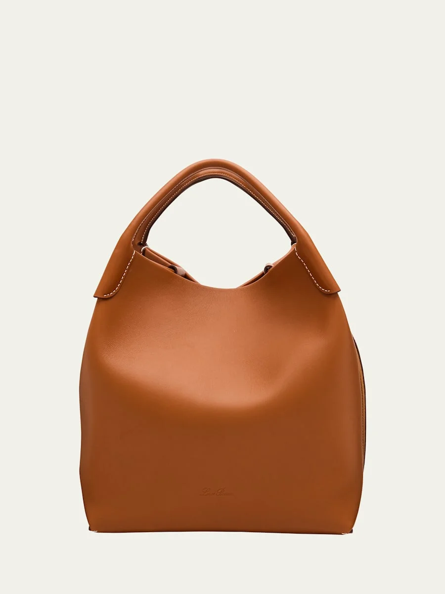 Loro Piana "Bale" bag in leather Two carry handles Adjustable, detachable strap Contrast stitching Logo accent Wipe clean Made in Italy