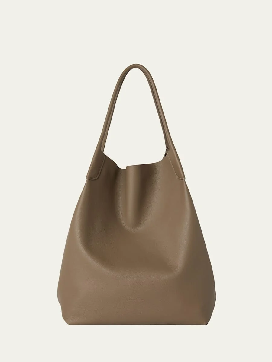 With a nod to the brand's heritage and an eye to the future, the Extra Large Bale hobo bag is a testament to enduring elegance. Crafted in sumptuous calfskin, this bag is a tactile delight, its supple softness and unlined construction inviting the touch and evoking a sense of understated and profound luxury. Inspired by the bags used to transport and store Loro Piana's exquisite cashmere, this bag is a tribute to the brand's time-honored expertise: the double handles are a nod to functionality, while the softness of the leather is a celebration of the senses. Loro Piana "Bale" hobo back in smooth calf leather Rolled top handles Includes detachable zip pouch Embossed logo at front and base Lining: Leather Approx. 15.7"L x 12.6"W x 10.6"D Made in Italy Proposition 65 warning for California residents Online Inquiries: BGS21_NCV9S| Store Inquiries: #4958222